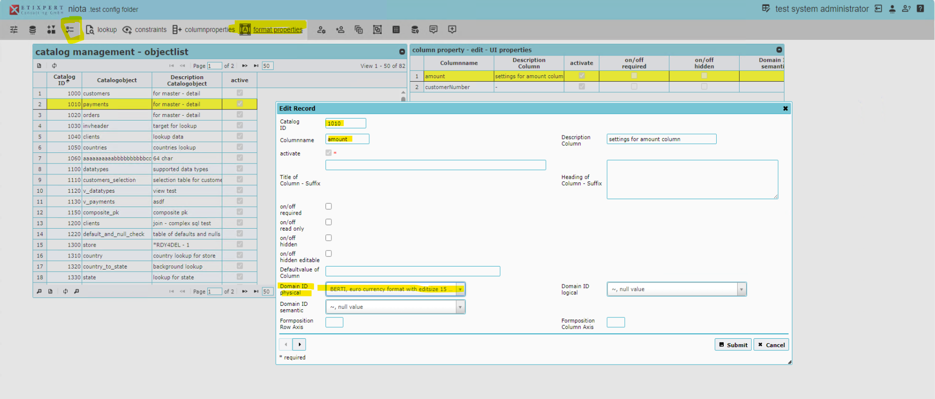 To enable grid formats and grid end user experience to your needs there is the database (based) grid edit format feature. Format of UI/grid edit pages is done on several levels and with different base objects.