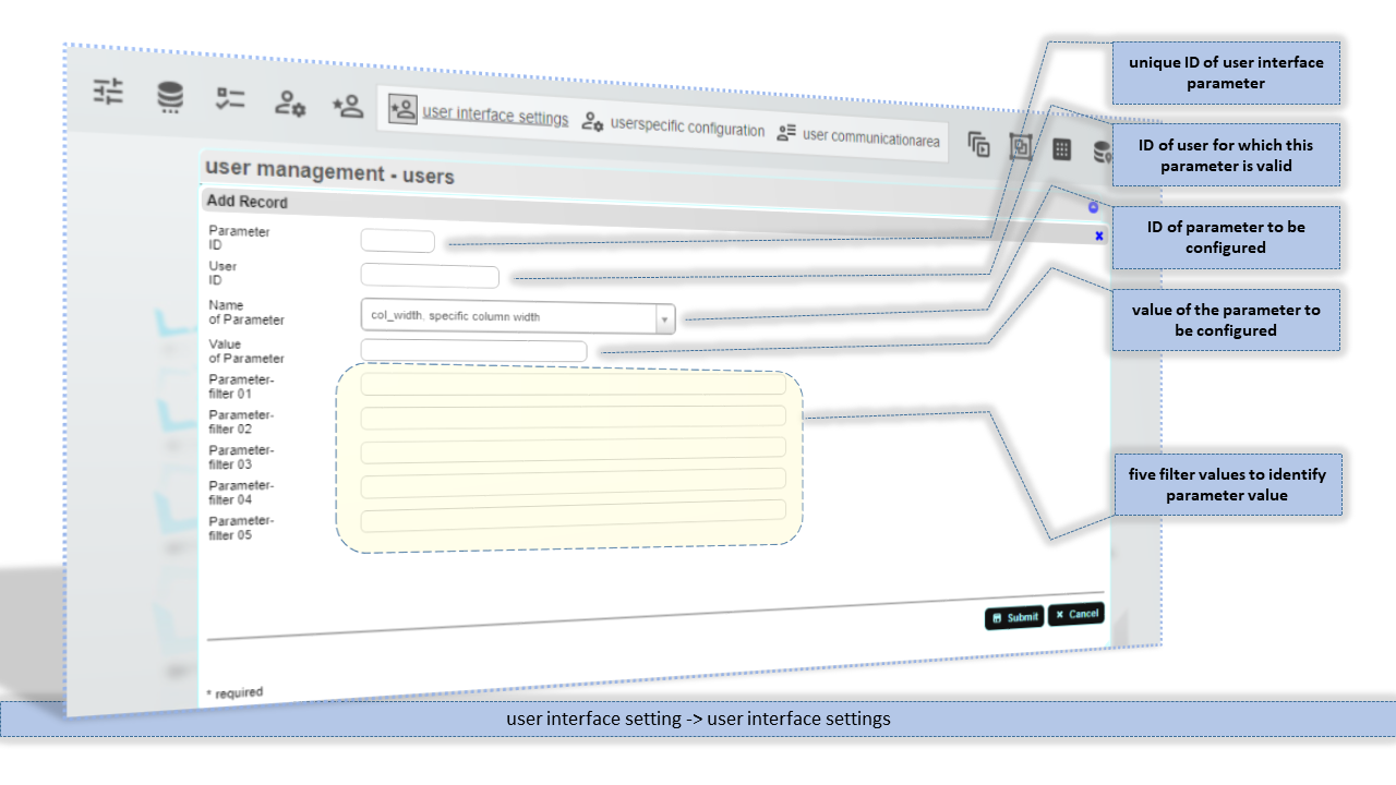 Unique internal ID of user interface parameter. Value is set by database sequence feature.