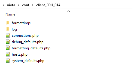 Client-folders are placed inside niota/conf folder. Each client has a home or root folder and must have a specified set of config files in a given structure below the root folder.